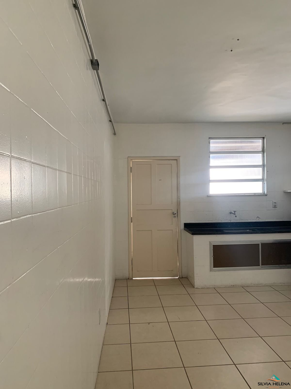 RECEPÇÃO COM 02 DIVISÕES, 02 BANHEIROS, 01 COZINHA GRANDE, ÁREA DE LAVANDERIA.