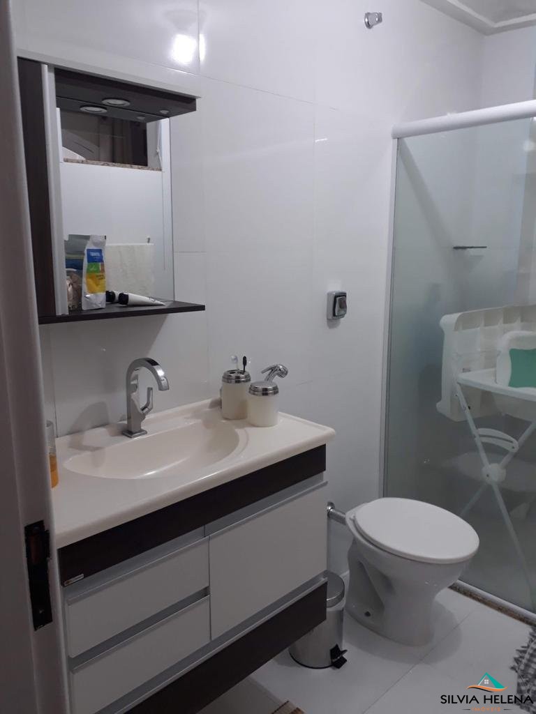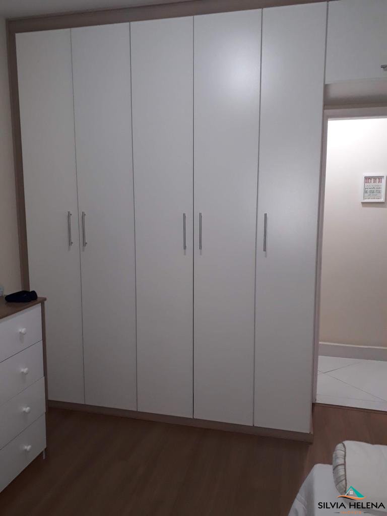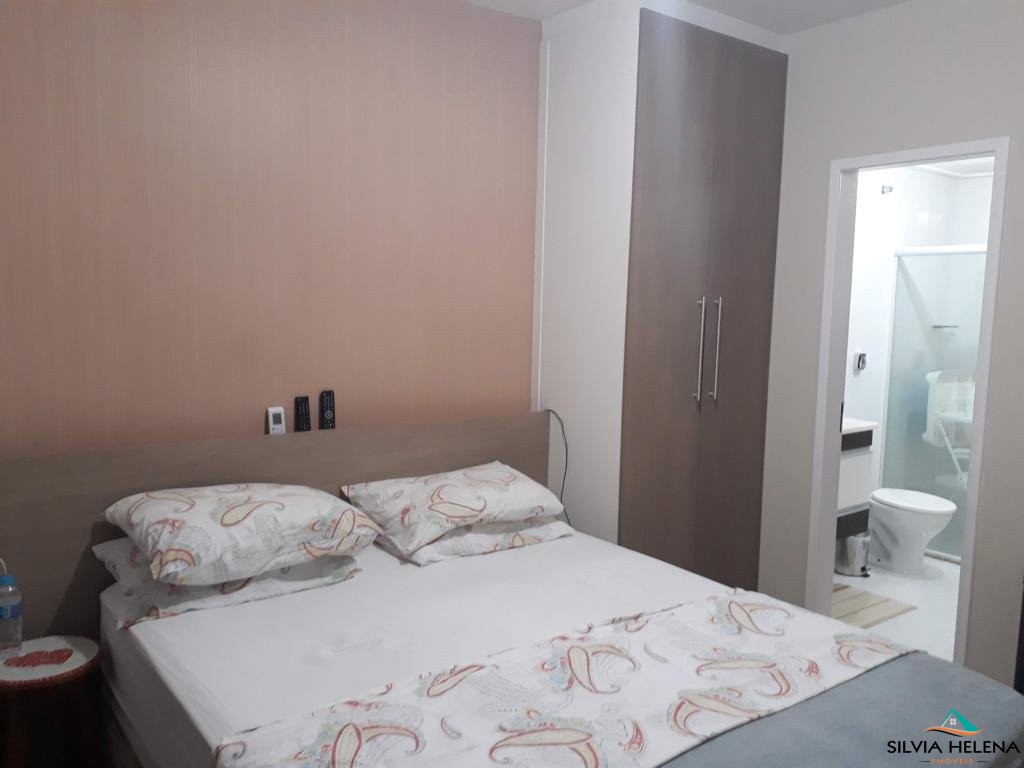 O imóvel possui 3 quartos, sendo 1 suíte (com closet), ar condicionado em dois deles, sala de estar, banheiro social (ambos com boxe e revestimentos modernos), cozinha e área de serviço com armários planejados e garagem coberta.