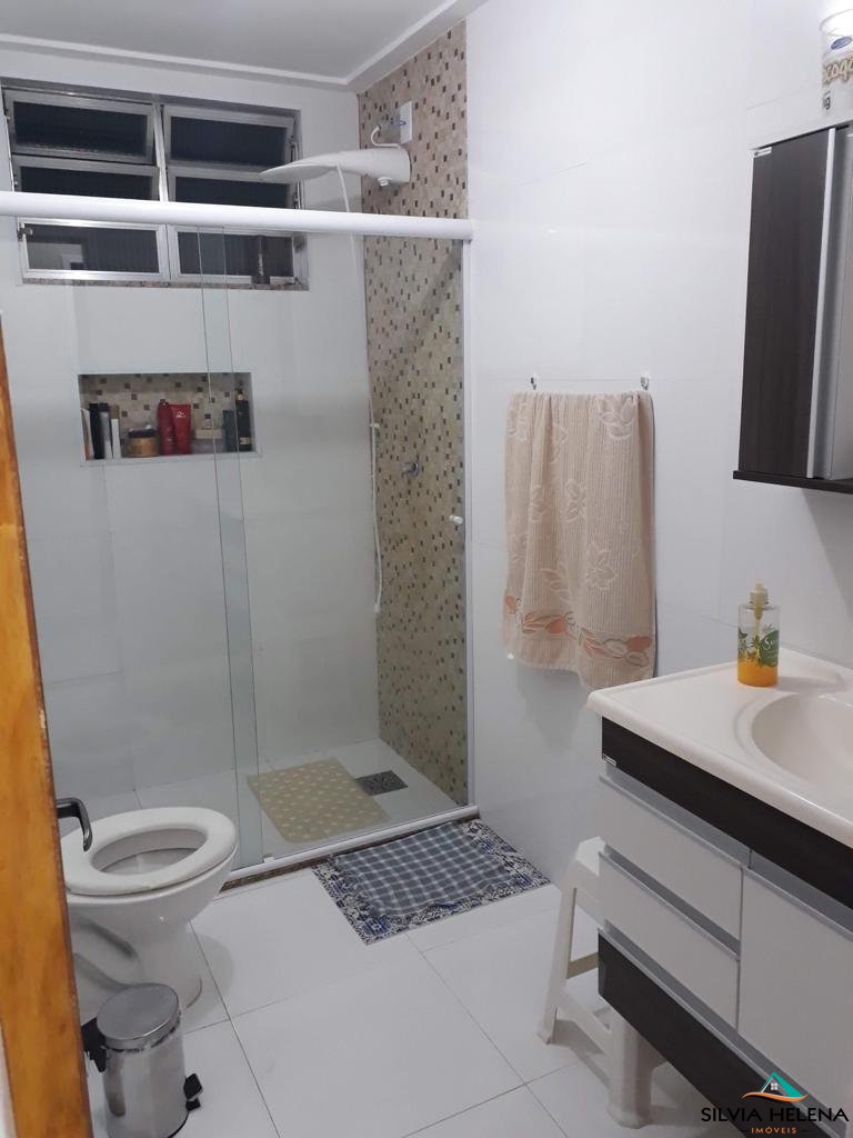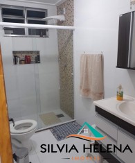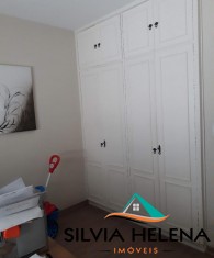 O imóvel possui 3 quartos, sendo 1 suíte (com closet), ar condicionado em dois deles, sala de estar, banheiro social (ambos com boxe e revestimentos modernos), cozinha e área de serviço com armários planejados e garagem coberta.